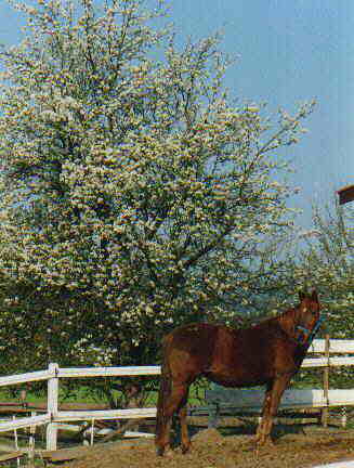 Die hübsche Fuchstute mit dem zierlichem Kopf ist Bonny, ein Mix aus einer arabischen Mutter und einem Zweibrücker